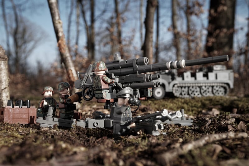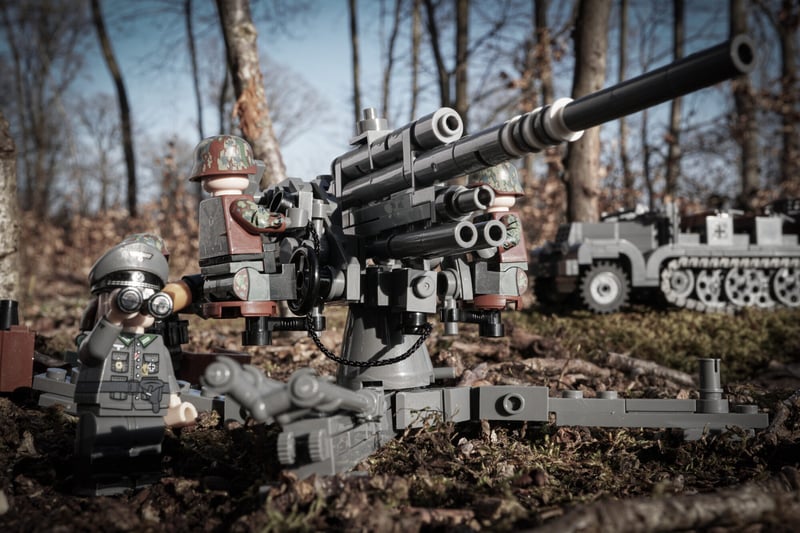 With 355 high-quality bricks, our brick kit offers a balanced challenge and features a rotating gun mount, adjustable supports, and detailed elevation systems. With an included Sd.Ah.202 trailer for added realism, the gun can also be displayed in firing mode or towed by the Buildarmy Sd.Kfz.7 half-track.