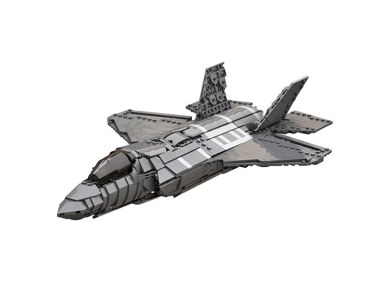 Model: The model corresponds very closely to the original. The representation of the engine units inside the aircraft is particularly beautiful. The model has real engineering aspirations. It’s amazing! All the main flaps are included and can be shown open or closed accordingly. The surfaces are accurate, but may be fluttery in some places and fall off easily. Once the model is standing, it is relatively stable in itself. It also only stands on the running gear. However, the running gear could be a little stronger. Unfortunately, the hooks supplied do not work for the running gear. The running gear could be modified so that hands (used stones) represent the angle on the rear running gear from above and below. It would certainly be worthwhile for the designer to rework this, especially to provide a white colour. I changed the front wheel, as I was not happy with the plastic wheel assembled by two black stones. The elevators appear somewhat disproportionate due to the long tiles or feel “contrary to the direction of flight”. The cockpit is unfortunately too small for a pilot figure. If you leave out the legs, a pilot fits in. (ATTENTION: Pilot is not included in the model!) The base plate supplied is extremely solid, but I don’t use it. I’ll see if I can represent the hovering state with trans clear bricks. I don’t like the sand-coloured bricks.