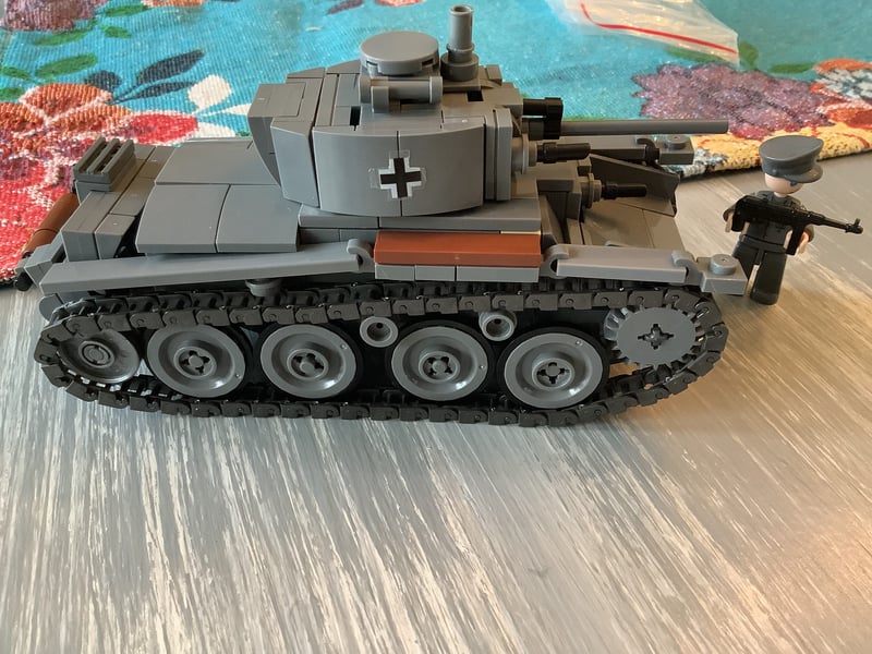 Great looking model, very solid to play with. A lot of fun to build. Pretty much no interior, but tracks, gun elevation and turret rotation are all very satisfying. Idler wheel mounting is a little weak, I reinforced mine with one additional 1×5 studded plate.