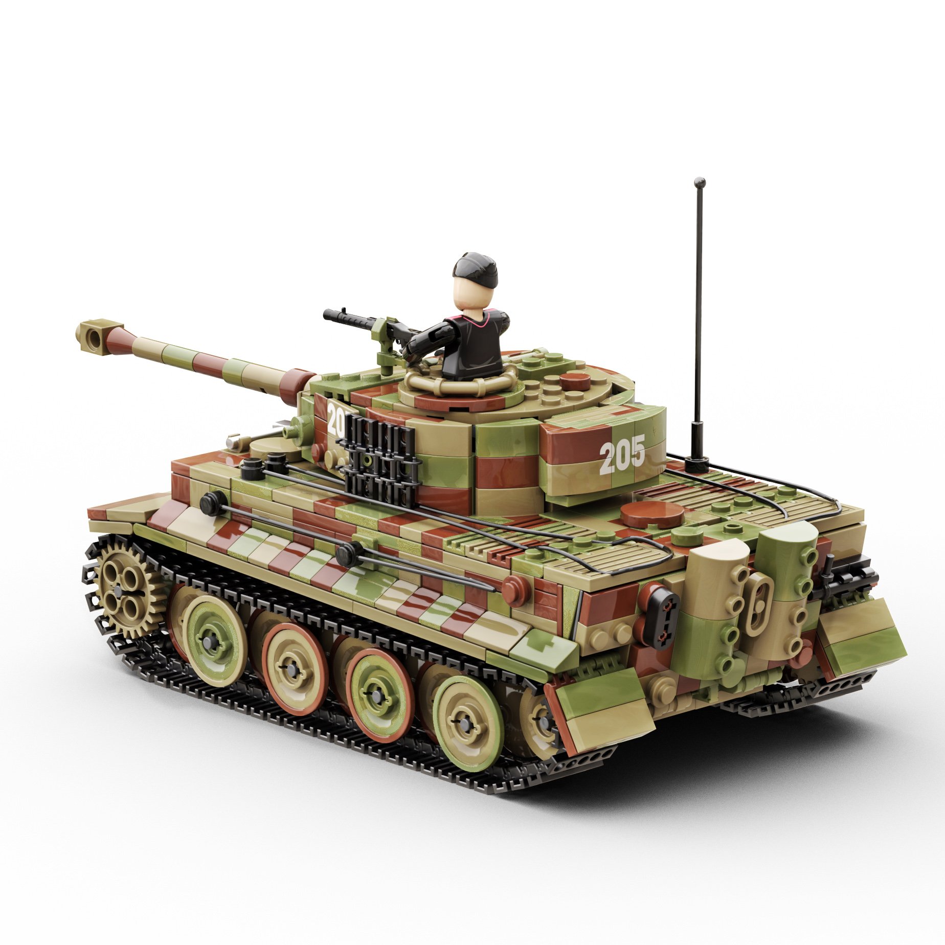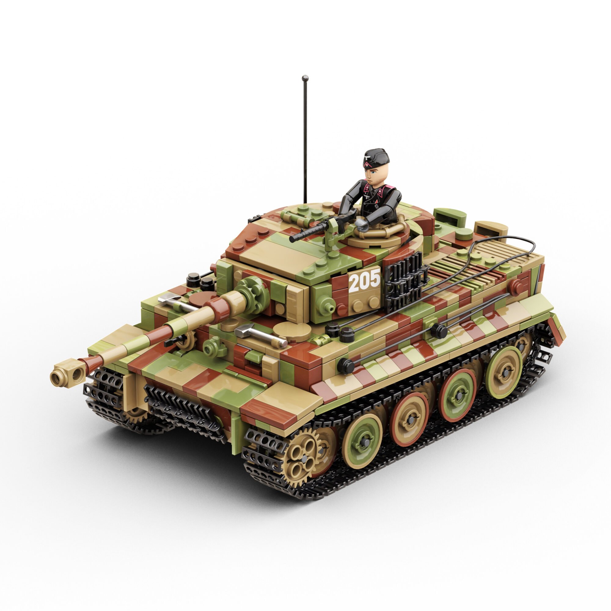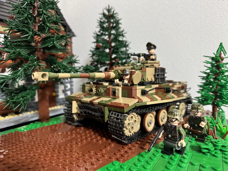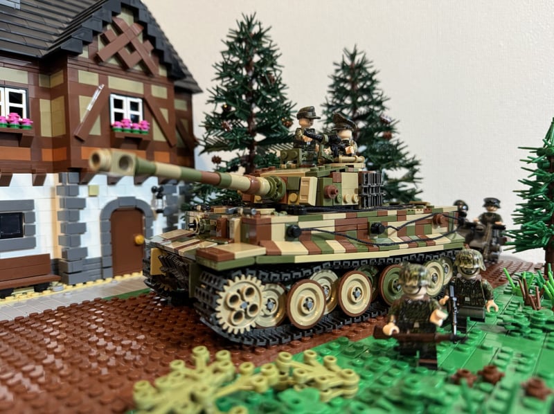 Inspired by the renowned Tiger 1 tank number 205, commanded by the legendary Michael Wittmann, this model captures the essence of one of WW2’s most formidable tanks in stunning 1:33 minifigure scale. It features the the three-colour camouflage of the Tiger 1 in Normandy which was characterised by its distinctive and irregular strokes of olive green and reddish brown on a base layer of dark tan. This scheme was carefully designed for the tank to blend seamlessly with the diverse environments of the Normandy battlefields, from dense hedgerows and woods to open fields. With an 8/10 building difficulty and a rewarding 2.5-hour assembly time, this kit offers a thrilling challenge for those with average LEGO experience.
