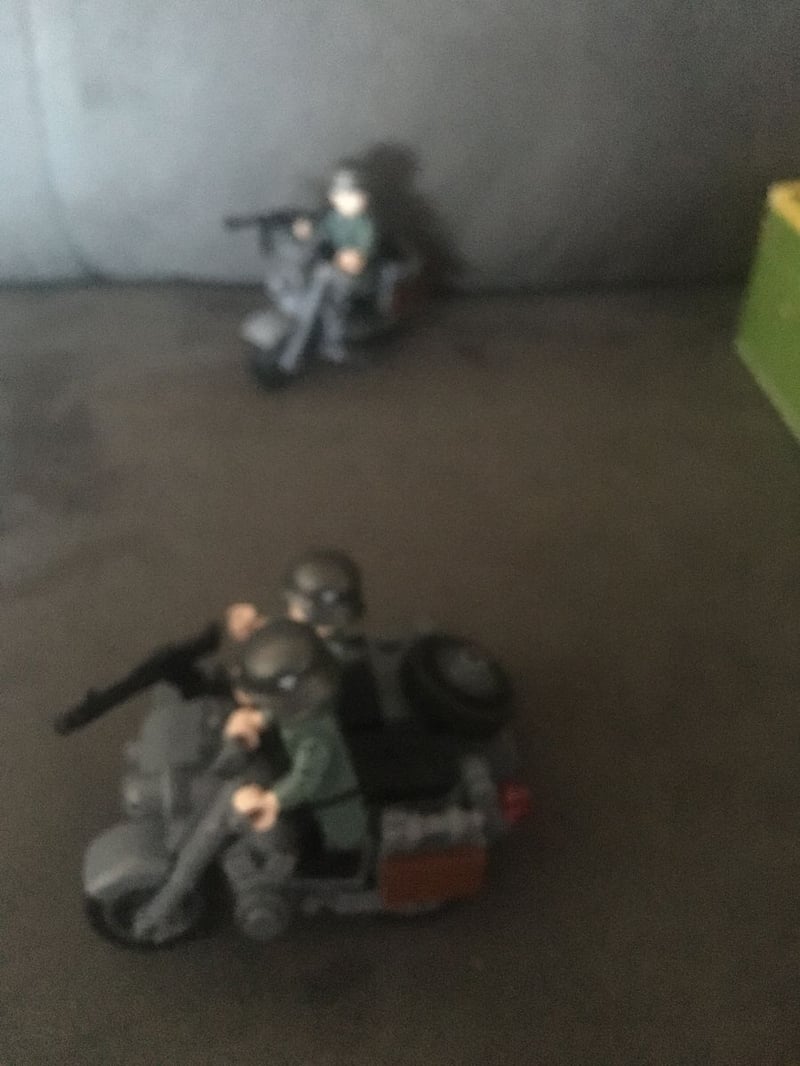 Unfortunately the side-car is a little unstable & dips forward, but this is understandable. My son re-positions pieces on his scenes a lot.