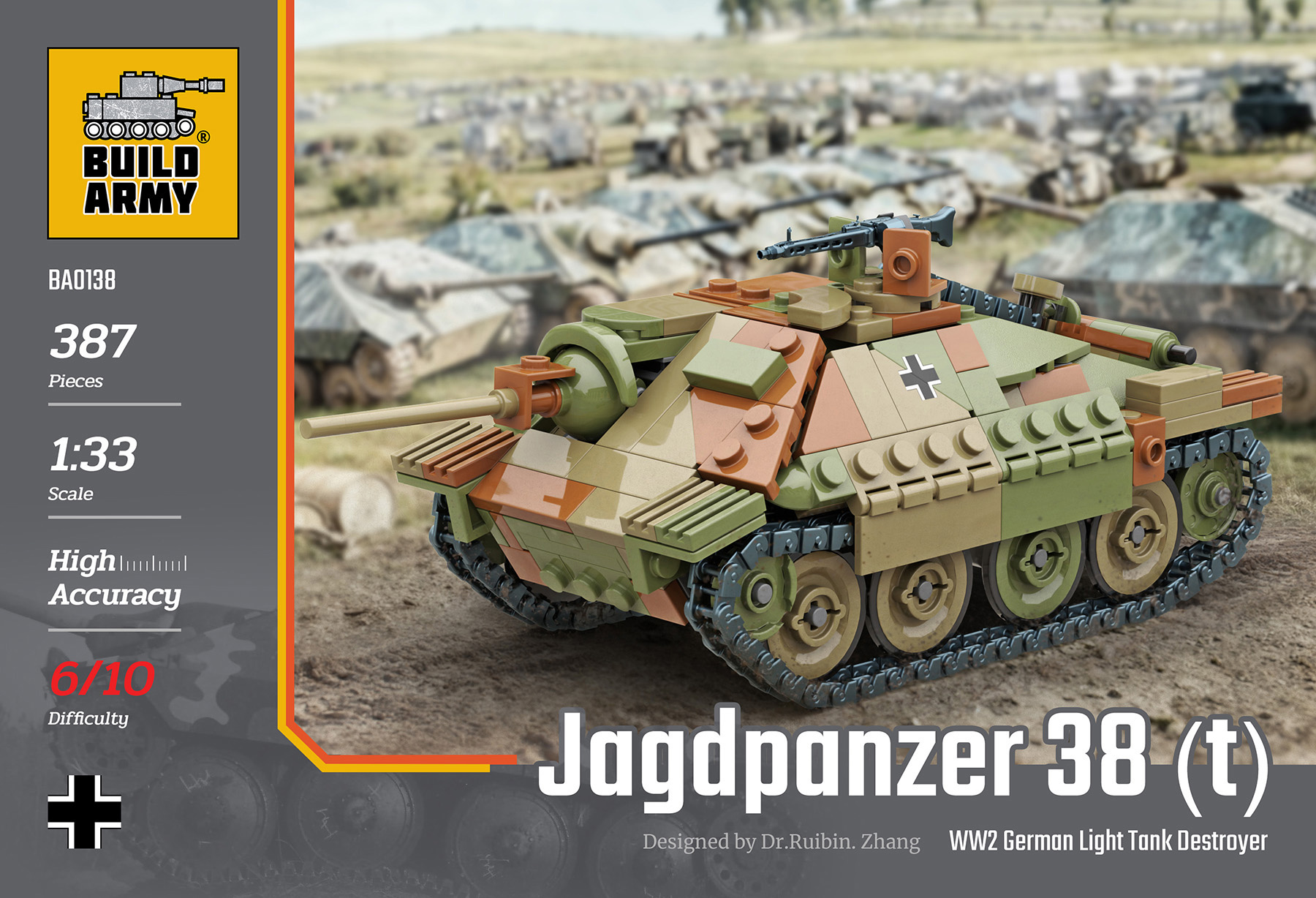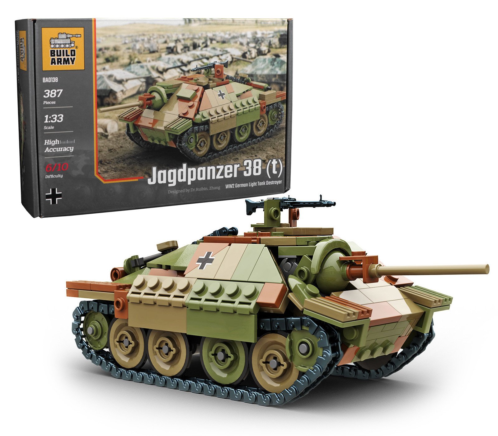 The Jagdpanzer 38(t) (Sd.Kfz. 138/2), also known as ‘Hetzer’, was a WW2 German light tank destroyer based on a modified Czechoslovakian Panzer 38(t) chassis. Built with high-quality, precision-molded bricks, our WW2 Jagdpanzer 38(t) Hetzer German light tank destroyer V2 kit offers an engaging build for collectors, hobbyists, and military enthusiasts. Perfect for display or as part of your historical model collection!